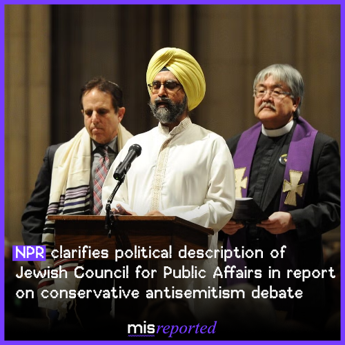 NPR clarifies political description of Jewish Council for Public Affairs in report on conservative antisemitism debate